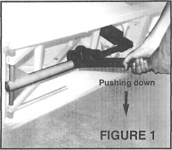 - Using the chain wrench or pipe wrench, unscrew the actuator ball nut from the gray actuator adapter tube (see FIGURE 1). The table may have to be run to a higher or lower position to release one from the other. Use the wire brush to remove hardened lock-tite from tube threads.
