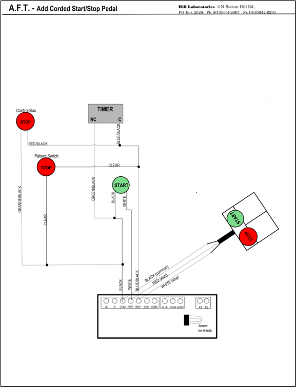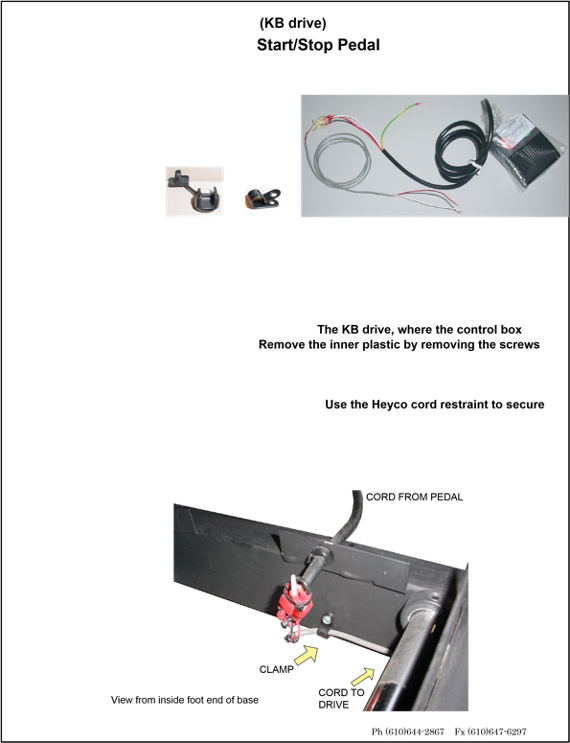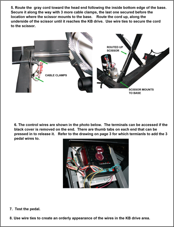 - Connect the four foot long gray cord to the foot pedal. Secure the cord with a cable clamp, as shown.