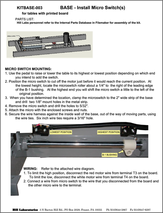 - Replace Reed Switches (Tables thru Feb 2008)