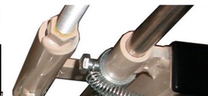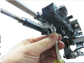 1. Install the mechlok with a shoulder bolt at each end as shown. Include a washer on the bolt that secures the upper end to the cross bar. Secure each with a unlock nut.
