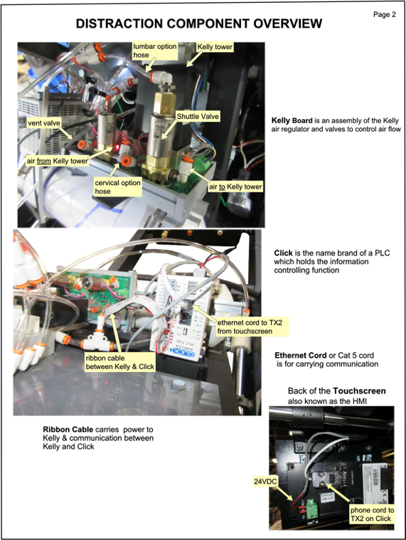 Solve: Air is going through the shuttle valve and right into the distraction cylinder. The Shuttle Valve is the taller silver and gold valve mounted on the Kelly Assembly. It controls the Lumbar and Cervical distraction.