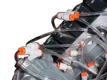- Tie (or tape) the Y-fitting from Step 1 to the side of distraction cylinder hose from Step 3 so it does not get damaged by moving parts.