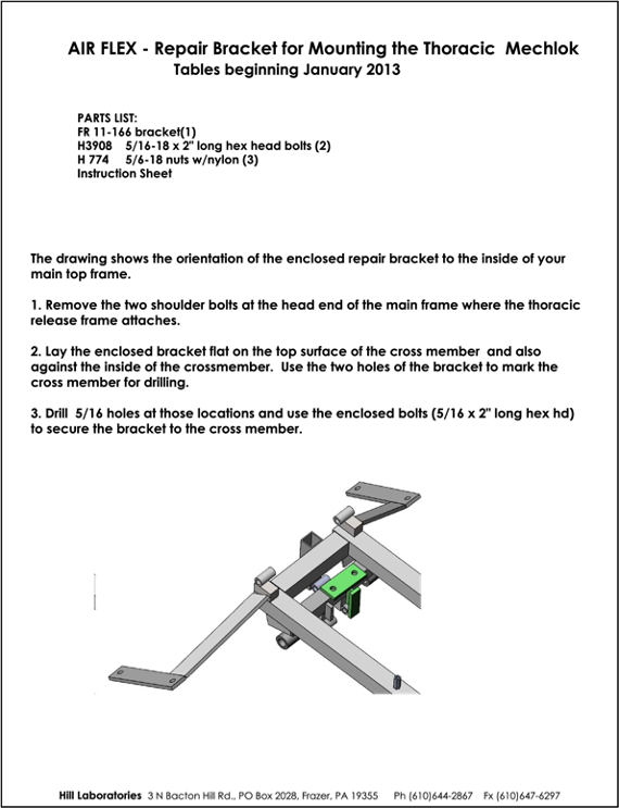 - Repair Bracket for Mounting the Thoracic Mechlok (Tables January 2013 - Present)