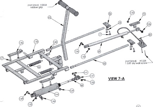 Loosen the 10 set screws on the crossbar & glide bar guide (triangular shaped) that retain the glide rods #43.