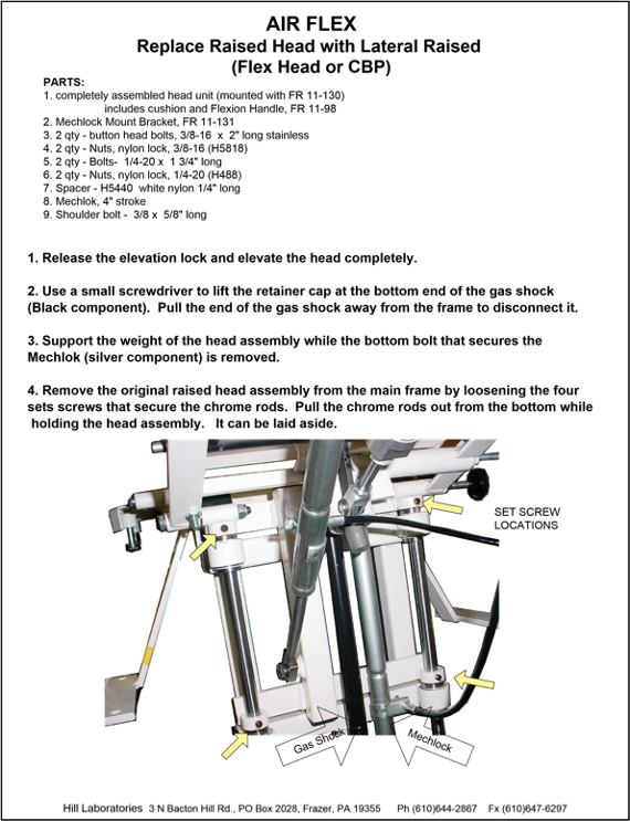 - Replace Flex Lock and Flexion Cylinder