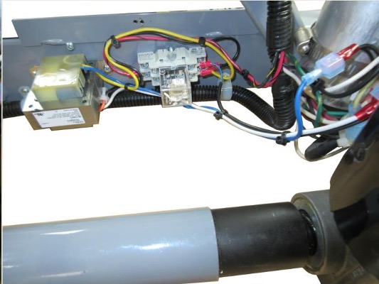 - Mount the transformer and base for the relay to the inside of the base side tube as shown. The transformer is secured w ith the 1/2″ long self-tapping screws. The relay base is secured by pre-drilling 5/32″ holes and securing with the 1 1/4″ sheet metal screws.