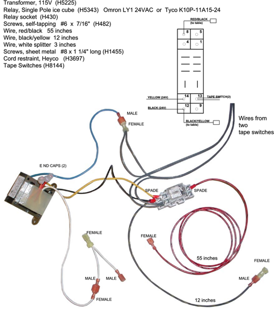 - The wire from the tape switch with the yellow connector joins with the blue wire from the transformer.