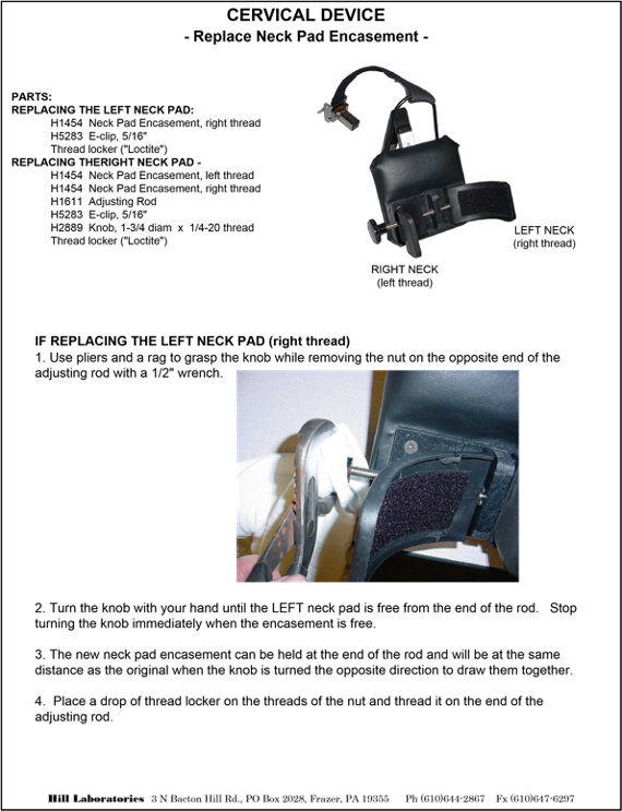 - Replace Neck Pad Encasement on Cervical Device