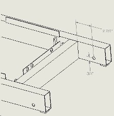 - Drill 1/8″ holes through both base tubes at location shown in diagram, below. Increase hole size to 1/2″. NOTE: If the long rod does not pass through all the holes than enlarge only the holes located on the inside of the two tubes. This will prevent the rod from being too sloppy in the holes.