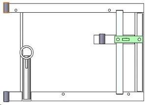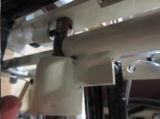 8. Orient the upper gas shock mount bracket against the head glide frame as shown. The frame does not need to be removed from the table. Mark and drill 5/16″ through both hole locations. Secure the bracket with the two 2″ long bolts and nylock nuts.