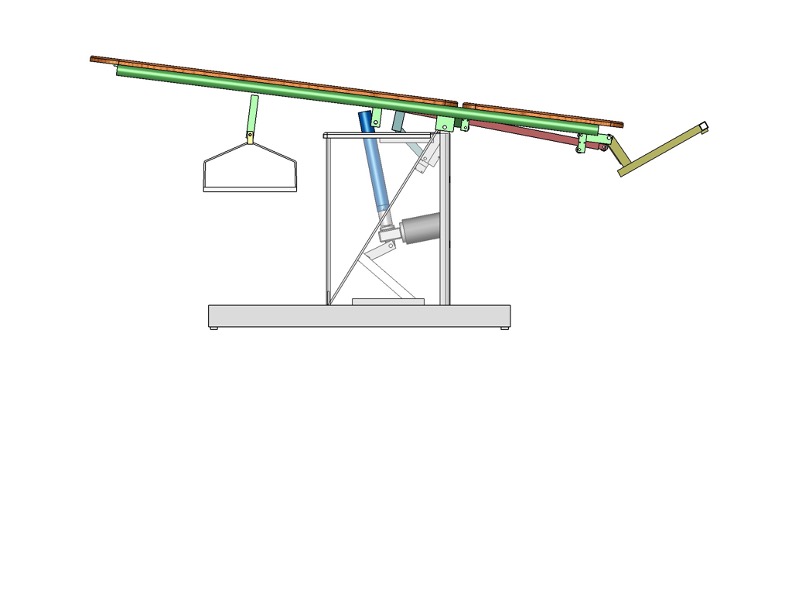 4. Take note that the seller horizontal tube is toward the foot end of the table. Remove the 1/2″ diameter rod, which attaches the top frame to the actuator. The rod is held in place by a smaller set screw. Allow the top frame to swing up and out of your way.