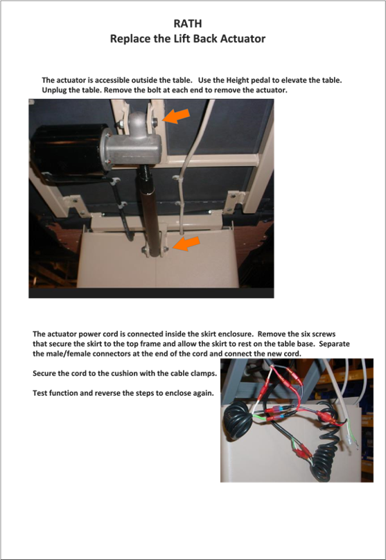 < Help Center Home Home Product Support Rath Table How to Replace the Lift Back Actuator on a Rath Table Print How to Replace the Lift Back Actuator on a Rath Table