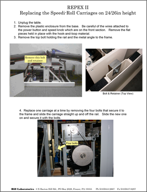 < Help Center Home Home Product Support Repex Repex II - touchscreen model Replacing the Speedi-Roll Carriages on 24/6in Height Print Replacing the Speedi-Roll Carriages on 24/6in Height