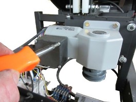 5. Remove the two bolts where the motor mount plate pivots on the base. Take note of the orientation of the motor on the plate before removing and then unbolt it. Bolt on the new motor to the mount plate nd use the original two shoulder bolts to secure at pivot point.