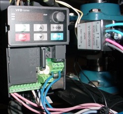 6. Mount the Rectifier close to the drive as shown so the two blue wires can reach the drive. Connect the blue wires form the rectifier to the drive where shown. The red and black wires from the rectifier need to be lengthened in order to connect to the blue wires of the motor. The white and yellow rectifier wires connect to the input terminals on top of the drive.