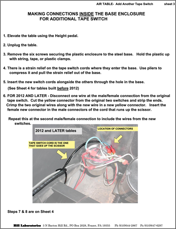 - Wire diagram for board & pedal assembly for 2, 3 4 motor tables