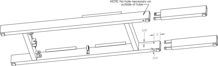 3. Insert the new extensions into the ends of the base tubes and secure with the 5/16-18 bolts.