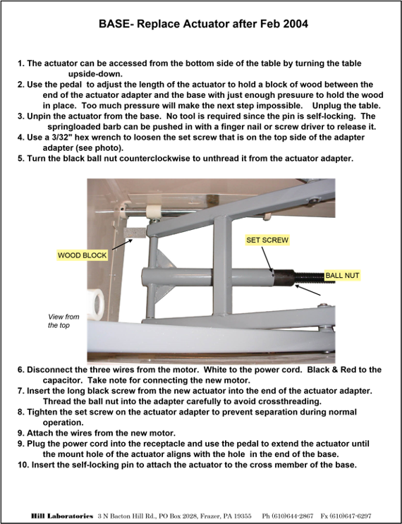- Replacing the Height Actuator in a Base For bases built after February 2004