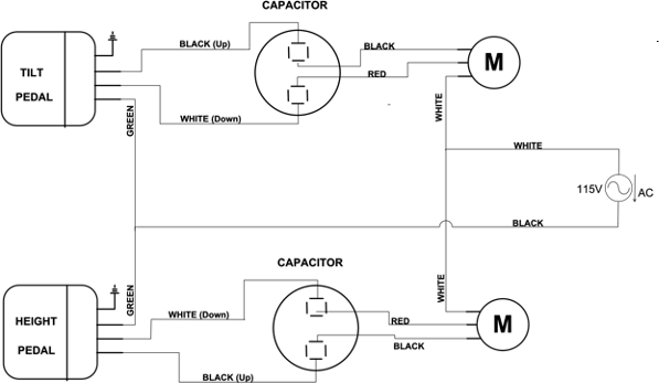 - Wire diagram for board & pedal assembly for 2, 3 4 motor tables