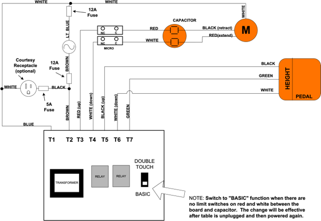 - Wire diagram for board & pedal assembly for 2, 3 4 motor tables