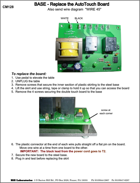 - Replace Circuit Board CM132 with CM129 for tables built between May 2011 to present